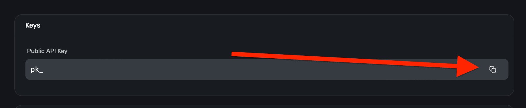 You'll use your API key to initialize the Superwall client in your apps. Each one is prepended with pk_ and then the identifier. To easily copy it, click the Copy icon on the right-hand side: