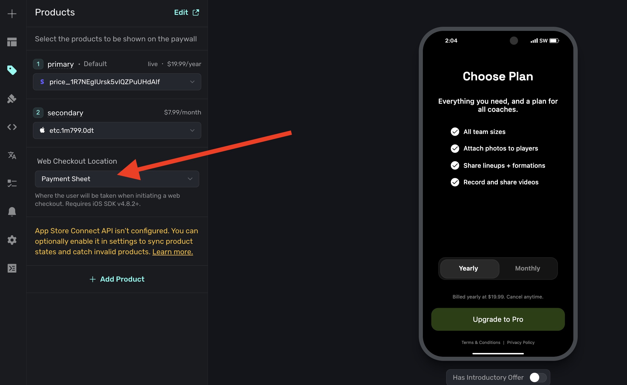 Choose a Stripe product on your paywall
